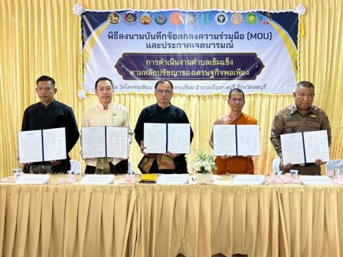 อำเภอเมืองลพบุรี โดยสำนักงานพัฒนาชุมชนอำเภอเมืองลพบุรี ดำเนินงานพิธีลงนามบันทึกข้อตกลงความร่วมมือ (MOU) การดำเนินงาน "ตำบลเข้มแข็ง ตามหลักปรัชญาของเศรษฐกิจพอเพียง"