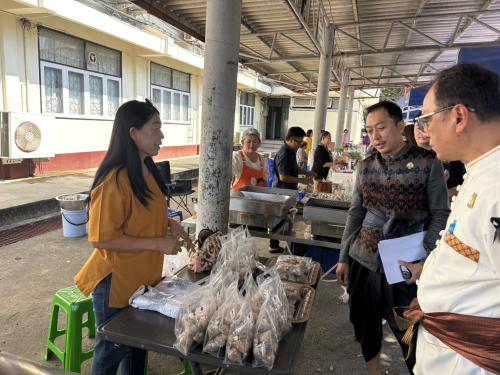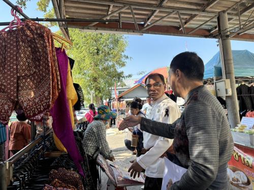 นายชาญ จูดคง นายอำเภอเมืองลพบุรี พร้อมด้วย นายดวงธนภณ ธรรมวงศ์ พัฒนาการอำเภอเมืองลพบุรี ร่วมเยี่ยมชมตลาดนัดประชารัฐคนไทยยิ้มได้ เพื่อติดตามการดำเนินงานฯ การส่งเสริมการขายให้กับผู้ประกอบการ OTOP ในโอกาสนี้ได้ร่วมพูดคุย สอบถาม และเลือกซื้อผลิตภัณฑ์จากชุมชน เพื่อกระตุ้นเศรษฐกิจฐานรากให้ชุมชนสามารถพึ่งพาตนเองได้อย่างยั่งยืน ทั้งนี้ได้มีข้าราชการ พนักงาน และประชาชนทั่วไป ให้ความสนใจ เลือกจับจ่ายซื้อสินค้า สร้างความพึงพอใจให้กับกลุ่มผู้ค้าที่เข้าร่วมโครงการเป็นอย่างมาก