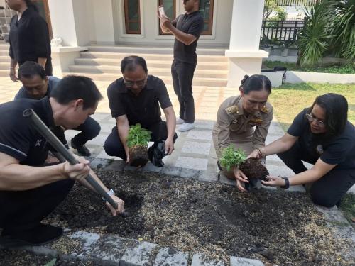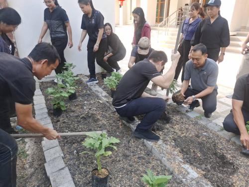 นายวีรพงศ์ ฤทธิ์รอด ผู้ว่าราชการจังหวัดลพบุรี พร้อมด้วย นายชาญ จูดคง นายอำเภอเมืองลพบุรี นางบัณฑิตา หมื่นพรม พัฒนาการจังหวัดลพบุรี นายดวงธนภณ ธรรมวงศ์ พัฒนาการอำเภอเมืองลพบุรี ผู้อำนวยการกลุ่มงานฯ เจ้าหน้าที่พัฒนาชุมชน และ นายสุทัศน์ หลีกพาล ประธานศูนย์เรียนรู้ปรัชญาเศรษฐกิจพอเพียง ๙ ตามพ่อ ร่วมปรับปรุงภูมิทัศน์โดยการปลูกผักสวนครัว ณ จวนผู้ว่าราชการจังหวัดลพบุรี เพื่อเป็นการขับเคลื่อนกิจกรรม ผู้นำต้นแบบ ตัวอย่างที่เห็นจริง โดยน้อมนำแนวพระราชดำริ สมเด็จพระกนิษฐาธิราชเจ้า กรมสมเด็จพระเทพรัตนราชสุดาฯ สยามบรมราชกุมารี สู่ปฏิบัติการปลูกพืชผักสวนครัว เพื่อสร้างความมั่นคงทางอาหาร เป็นตัวอย่างแก่ประชาชน และยังเป็นการรณรงค์เรื่องการปลูกผักเพื่อเป็นแหล่งอาหาร อีกด้วย